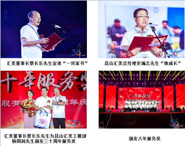 服務(wù)獎(jiǎng)?lì)C獎(jiǎng)環(huán)節(jié),8年、12年、20年、30年的服務(wù)獎(jiǎng)員工逐一走過紅毯,走上舞臺(tái)。30年來,多少匯美人,在各自的崗位上,忘我勞動(dòng),勤勉工作,在奉獻(xiàn)中實(shí)現(xiàn)著自我的價(jià)值。他們用智慧和汗水,為公司的成長(zhǎng)壯大貢獻(xiàn)力量。